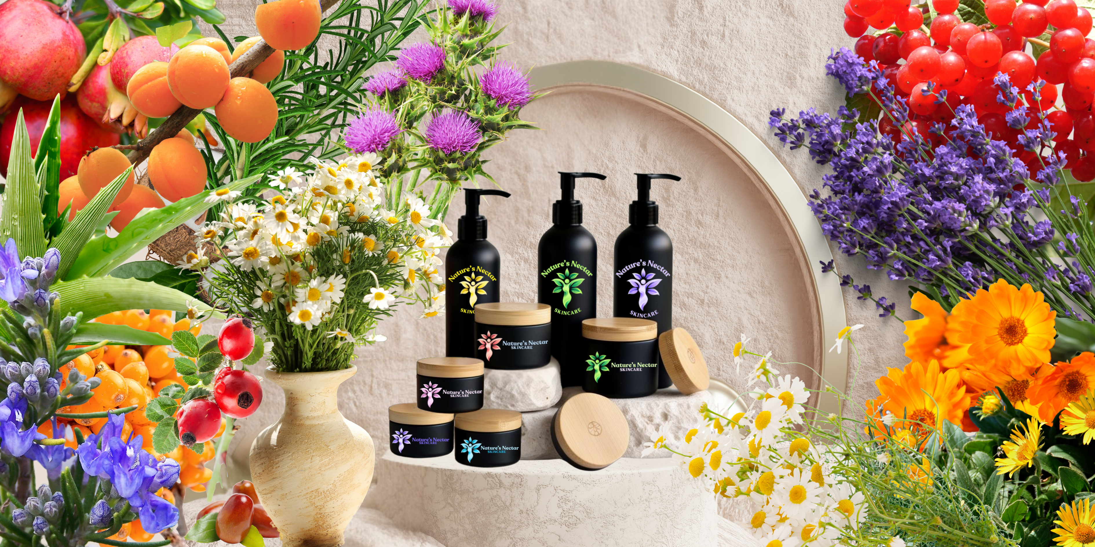 Nature's Nectar Skincare is our signature skincare brand, with a range of products formulated from Natural or Organic ingredients, including oils and extracts from herbs, berries and flowers. From petals and leaves, to seeds and roots, our skincare is packed full of nature's nectar!